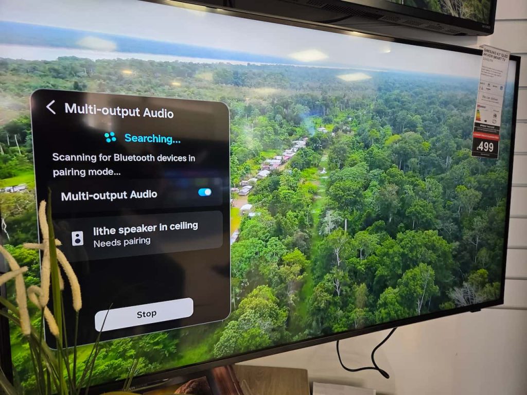 Being in a display showroom, the television was set to silent … so the only sound being transmitted was from the Auracast stream. This is one of Auracast’s advantages in houses with thin walls: people can listen with the main volume set to silent while tuning in to the Auracast at a volume of their choosing.